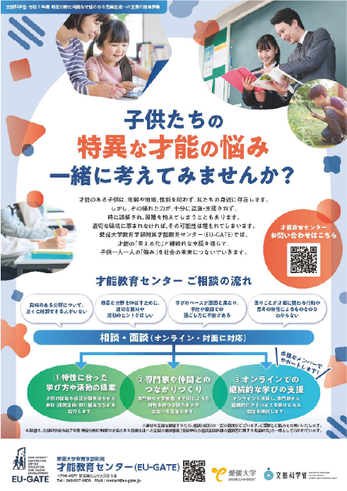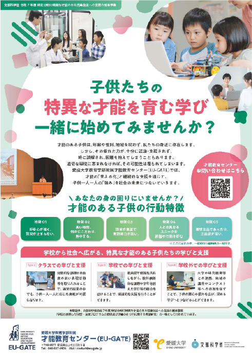 愛媛大学才能教育センターでは、特定分野に特異な才能のある児童生徒に対し、